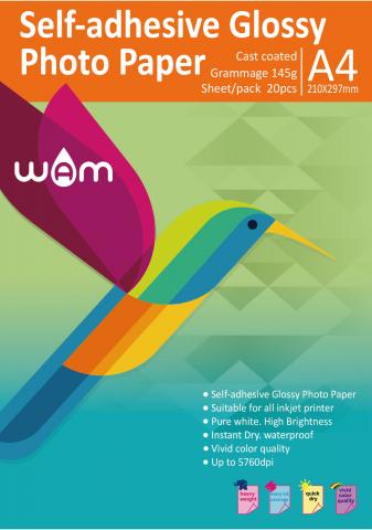 Impresoras: Papel glossy autoadhesivo Paquete de 20 hojas de papel Glossy autoadhesivo tamaño A4
